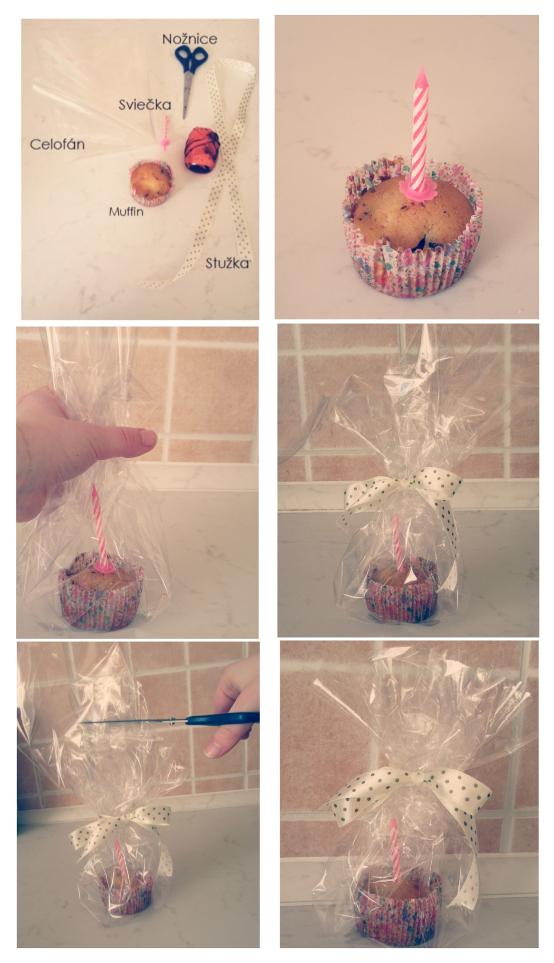 - Je to úplna klasika, inšpirovaná američanmi. Ja ju zvyčajne obalím ešte celofánom, lebo nevedno kedy má oslavenec v plane zjesť muffin. Na obrázku je muffin upečeny, ale keď si kúpite muffin v pekárni či v obchode určite to bude vyzerať ešte lepšie.